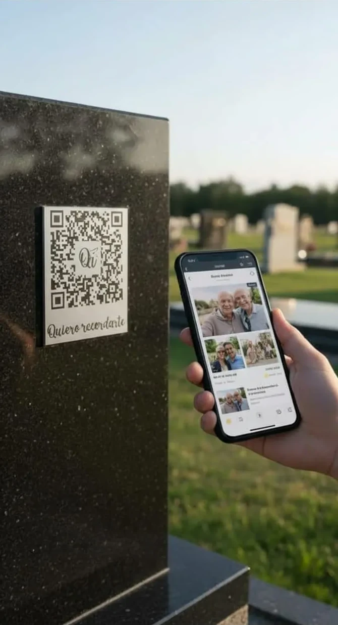 "Quiero recordarte" es un servicio que combina códigos QR impresos en soportes resistentes con perfiles memoriales digitales personalizados. Estos códigos pueden colocarse en lápidas, urnas o cualquier lugar significativo, permitiendo acceder a recuerdos digitales de seres queridos fallecidos.